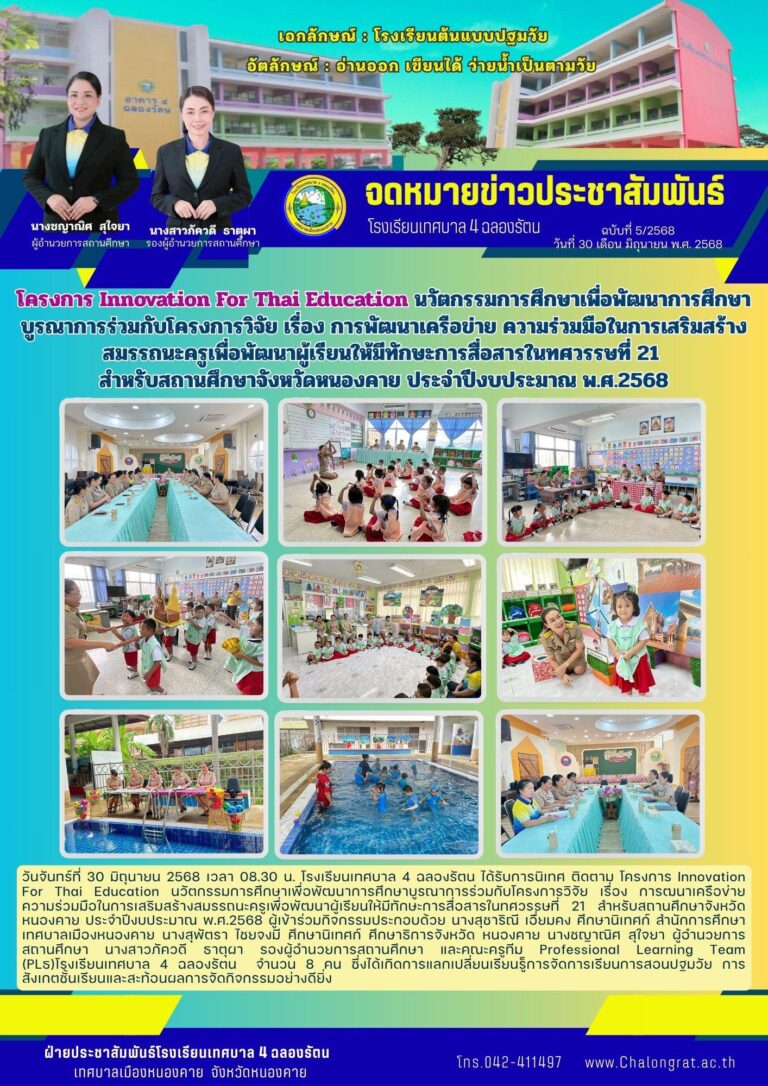 ข่าวกิจกรรมโรงเรียน โรงเรียนเทศบาล 4 ฉลองรัตน ได้รับการนิเทศ ติดตาม โครงการ Innovation For Thai Education นวัตกรรมการศึกษาเพื่อพัฒนาการศึกษาบูรณาการร่วมกับโครงการวิจัย30 มิถุนายน 20254 กรกฎาคม 2025